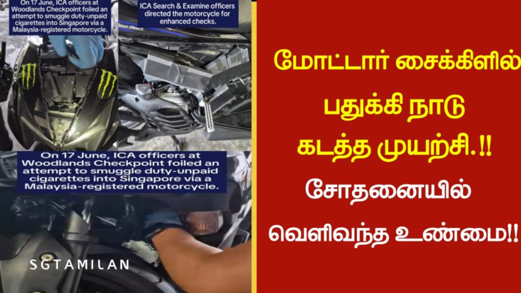 கடந்த செவ்வாய்க்கிழமை (17) சிங்கப்பூருக்குள் நுழைய முயன்ற மலேசியாவில் பதிவு செய்யப்பட்ட மோட்டார் சைக்கிளை அமலாக்க அதிகாரிகள் சோதனை செய்தனர்.