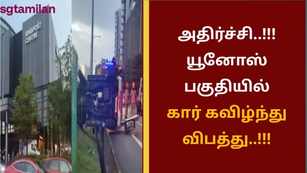 சியாவோஹோங்ஷு (Xiaohongshu) சமூக வலைத்தளத்தில் வெளியிடப்பட்ட காணொளியில், சிங்போஸ்ட் மையம் அருகே சாலையோரத்தில் கவிழ்ந்த காரை காணலாம்.