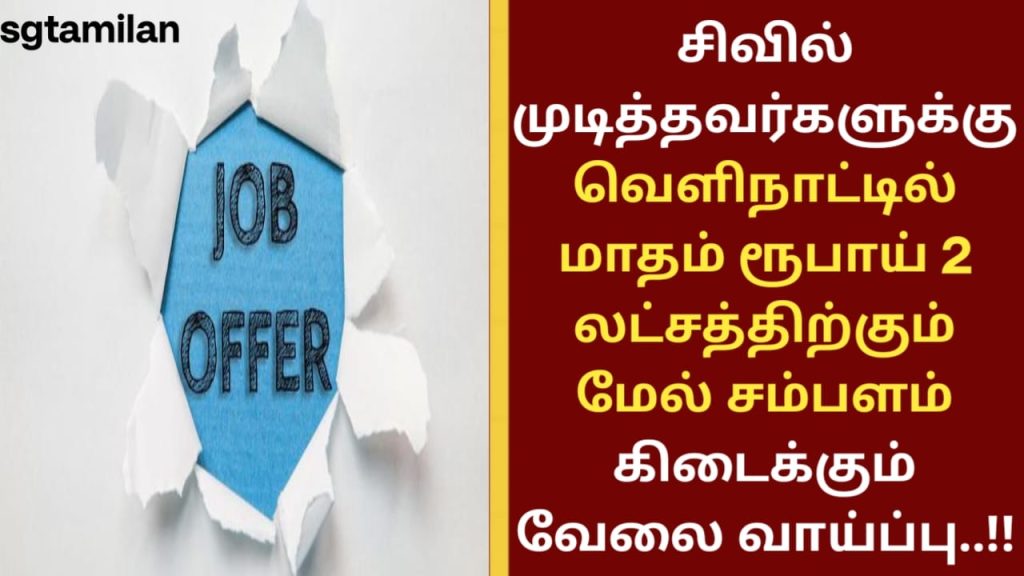 சிவில் முடித்தவர்களுக்கு வெளிநாட்டில் மாதம் ரூபாய் 2 லட்சத்திற்கும் மேல் சம்பளம் கிடைக்கும் வேலை வாய்ப்பு..!!