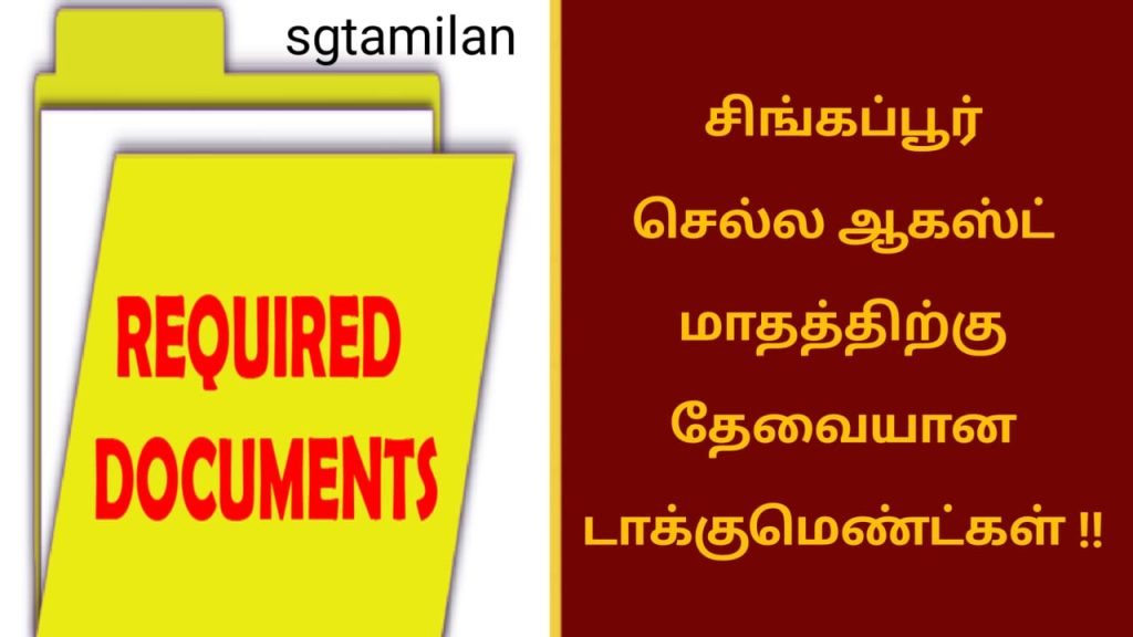 சிங்கப்பூர் செல்ல ஆகஸ்ட் மாதத்திற்கு தேவையான டாக்குமெண்ட்கள் !!