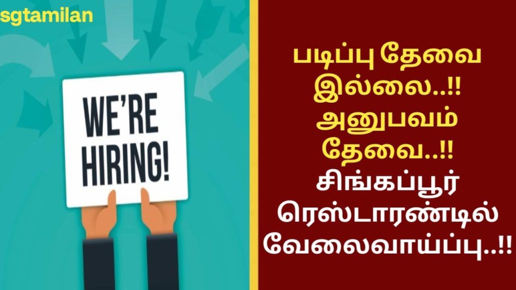 படிப்பு தேவையில்லை..!! அனுபவம் தேவை..!! சிங்கப்பூர் ரெஸ்டாரண்டில் வேலைவாய்ப்பு..!!
