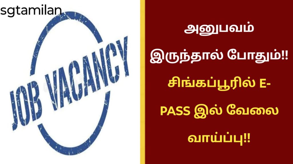 அனுபவம் இருந்தால் போதும்!! சிங்கப்பூரில் E- PASS இல் வேலை வாய்ப்பு!! இந்த வேலை வாய்ப்பு பற்றி முழுவதுமாக படித்துவிட்டு விண்ணப்பிக்கவும்.எங்கள் அலுவலகம் இந்திய நேரப்படி காலை 9.30 மணி முதல் மாலை 06.00 மணி வரை மட்டுமே திறந்திருக்கும்.அந்த நேரங்களில் மட்டுமே பதில் கிடைக்கும். ஞாயிற்றுக்கிழமை விடுமுறை.மேலும் இப்பதிவில் கொடுக்கப்பட்டுள்ள டெலெக்ராம் id க்கு மட்டும் தொடர்பு கொள்ளவும்.குறிப்பு : இந்த வேலைக்கான தகுதி இருந்தால் மட்டும் விண்ணப்பிக்கவும்.நாங்கள் தினந்தோறும் நிறைய வேலை வாய்ப்புகளைப் பதிவிடுகிறோம்....