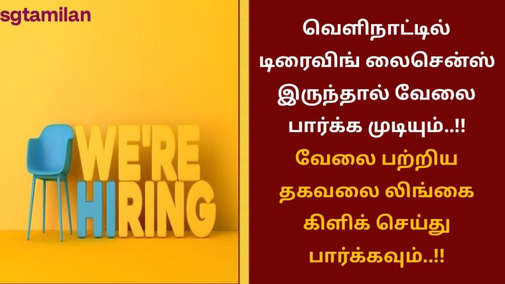 வெளிநாட்டில் டிரைவிங் லைசென்ஸ் இருந்தால் வேலை பார்க்க முடியும்..!! வேலை பற்றிய தகவலை லிங்கை கிளிக் செய்து பார்க்கவும்..!!