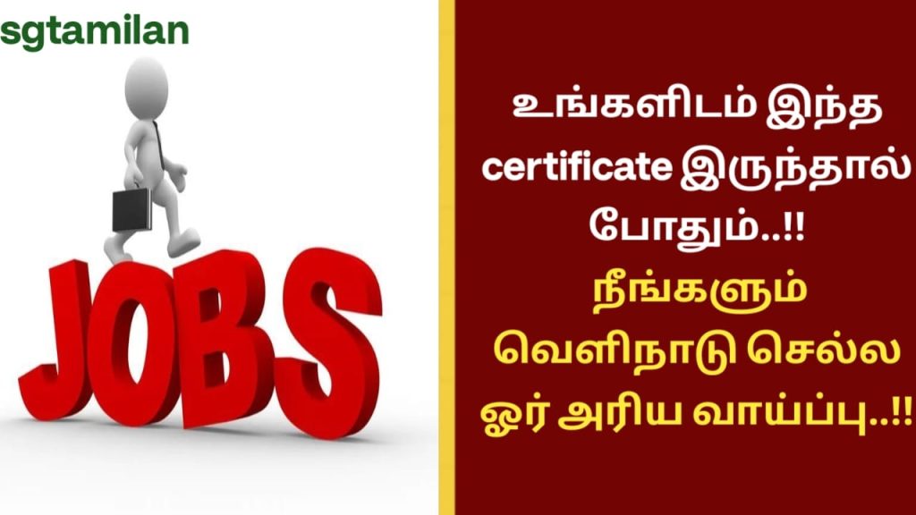 உங்களிடம் இந்த certificate இருந்தால் போதும்..!! நீங்களும் வெளிநாடு செல்ல ஓர் அரிய வாய்ப்பு..!!