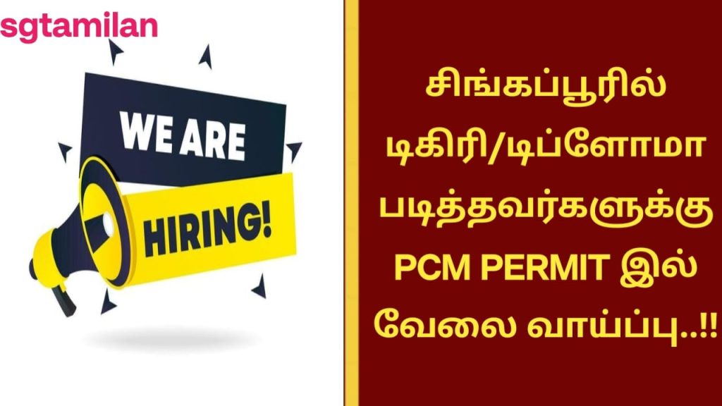 சிங்கப்பூரில் டிகிரி/டிப்ளோமா படித்தவர்களுக்கு PCM PERMIT இல் வேலை வாய்ப்பு..!!