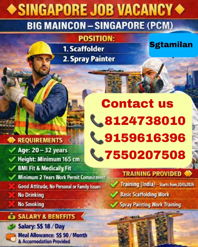 இது போன்ற வெளிநாட்டு,சிங்கப்பூர்வேலைக்குச் செல்ல விரும்புவோர்,“ SGTamilan ´´ இணைய பக்கத்தில் இணைந்திருங்கள்.