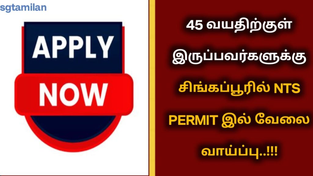 45 வயதிற்குள் இருப்பவர்களுக்கு சிங்கப்பூரில் NTS PERMIT இல் வேலை வாய்ப்பு..!!!
