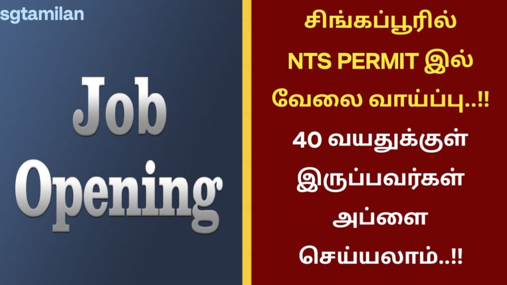சிங்கப்பூரில் NTS PERMIT இல் வேலை வாய்ப்பு..!! 40 வயதுக்குள் இருப்பவர்கள் அப்ளை செய்யலாம்..!!