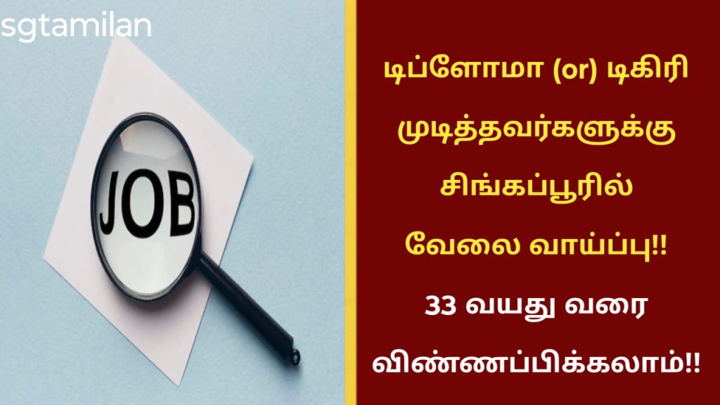 டிப்ளோமா (or) டிகிரி முடித்தவர்களுக்கு சிங்கப்பூரில் வேலை வாய்ப்பு!! 33 வயது வரை விண்ணப்பிக்கலாம்!!