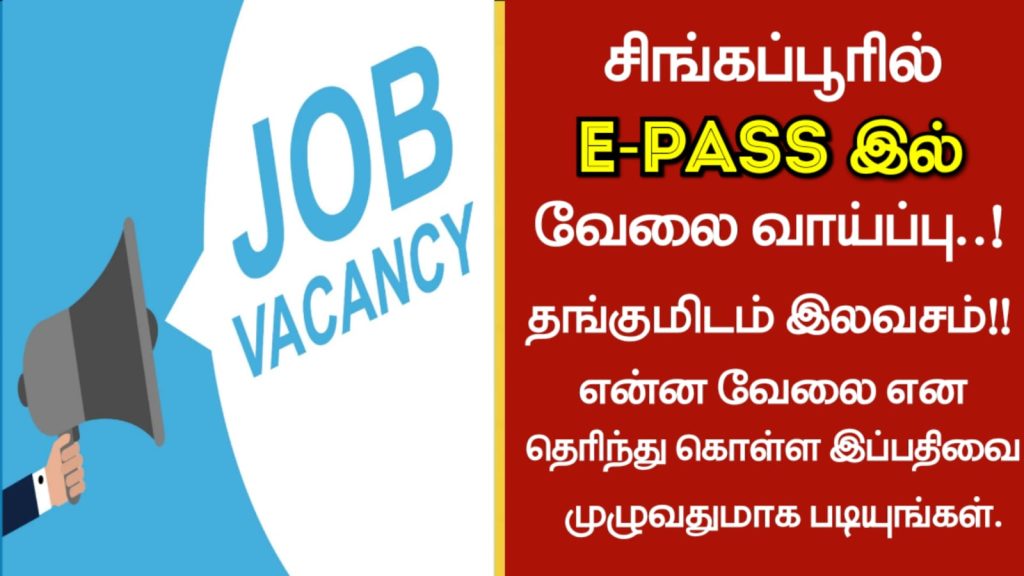 சிங்கப்பூரில் E PASS இல் வேலை வாய்ப்பு!! தங்குமிடம் இலவசம்!!என்ன வேலை என தெரிந்து கொள்ள இப்பதிவை முழுவதுமாக படியுங்கள்....