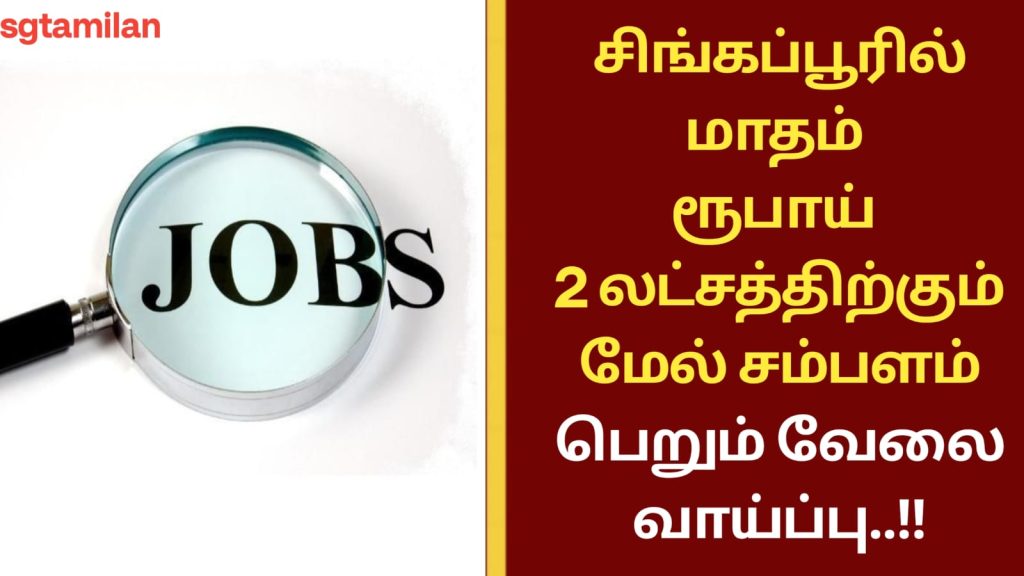 சிங்கப்பூரில் மாதம் ரூபாய் 2 லட்சத்திற்கும் மேல் சம்பளம் பெறும் வேலை வாய்ப்பு..!!
