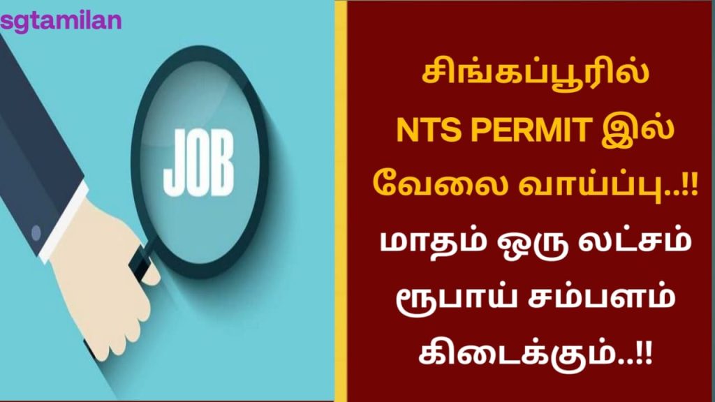 சிங்கப்பூரில் NTS PERMIT இல் வேலை வாய்ப்பு..!! மாதம் ஒரு லட்சம் ரூபாய் சம்பளம் கிடைக்கும்..!!
