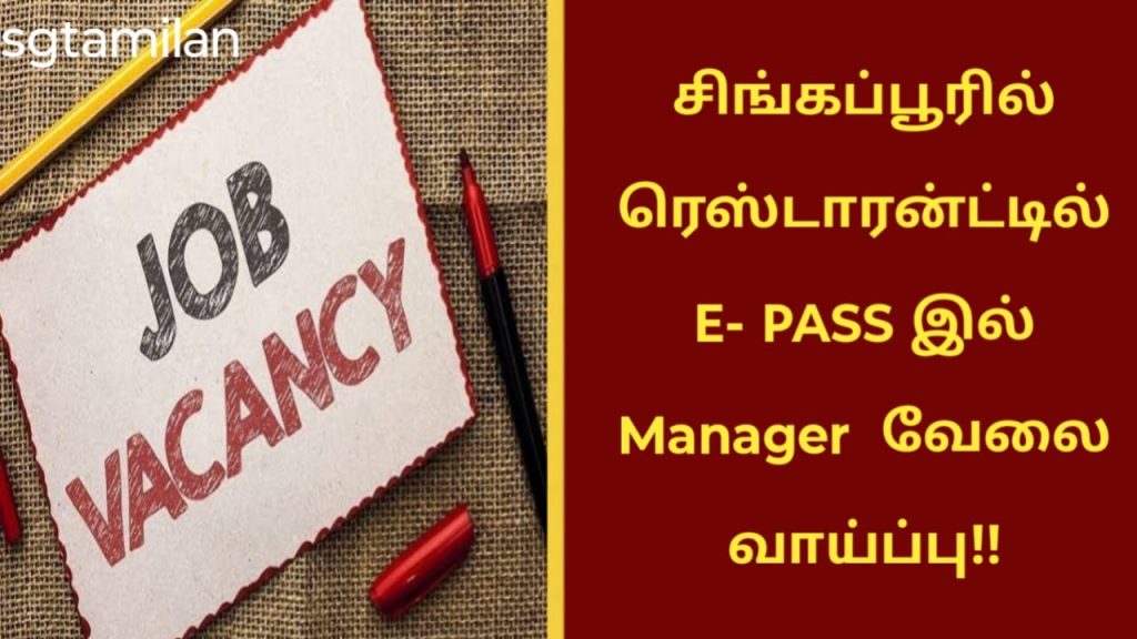 சிங்கப்பூரில் ரெஸ்டாரன்ட்டில் E- PASS இல் Manager வேலை வாய்ப்பு!!