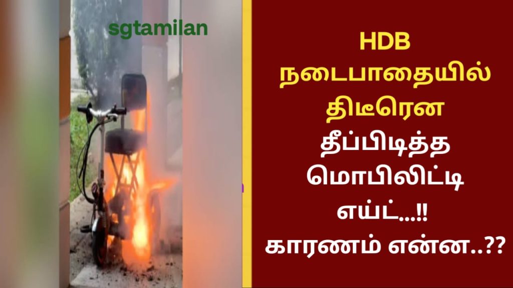 HDB நடைபாதையில் திடீரென தீப்பிடித்த மொபிலிட்டி எய்ட்…!! காரணம் என்ன..??