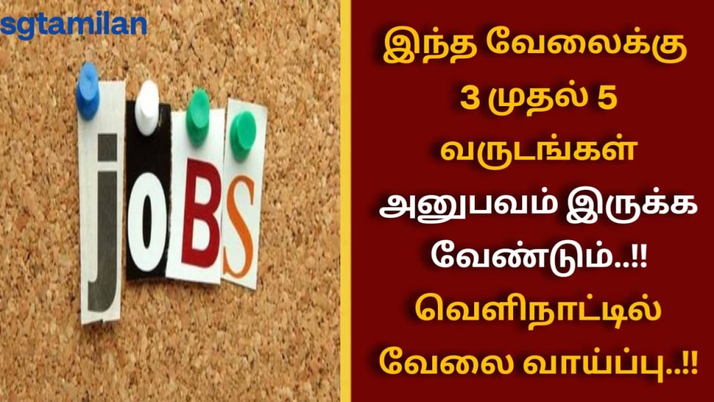 இந்த வேலைக்கு 3 முதல் 5 வருடங்கள் அனுபவம் இருக்க வேண்டும்..!! வெளிநாட்டில் வேலை வாய்ப்பு..!!
