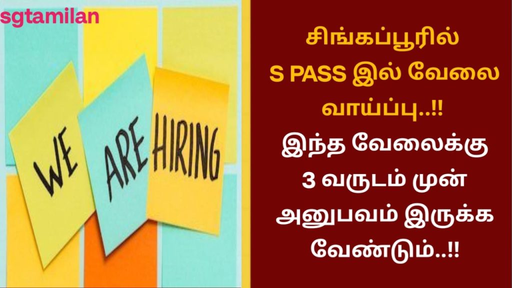 சிங்கப்பூரில் S PASS இல் வேலை வாய்ப்பு..!! இந்த வேலைக்கு 3 வருடம் முன் அனுபவம் இருக்க வேண்டும்..!!
