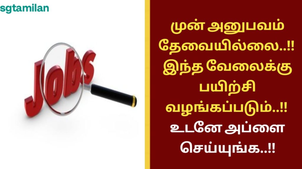 முன் அனுபவம் தேவையில்லை..!! இந்த வேலைக்கு பயிற்சி வழங்கப்படும்..!! உடனே அப்ளை செய்யுங்க..!!