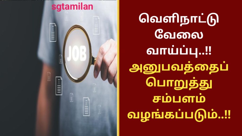 வெளிநாட்டு வேலை வாய்ப்பு..!! அனுபவத்தைப் பொறுத்து சம்பளம் வழங்கப்படும்..!!