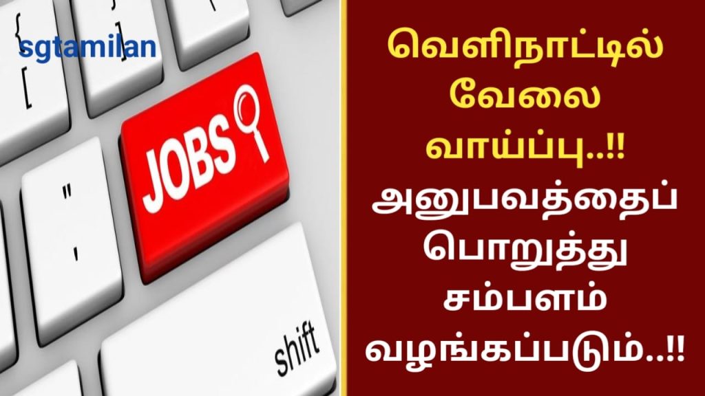 வெளிநாட்டில் வேலைவாய்ப்பு ..!!அனுபவத்தைப் பொறுத்து சம்பளம் வழங்கப்படும்..!!