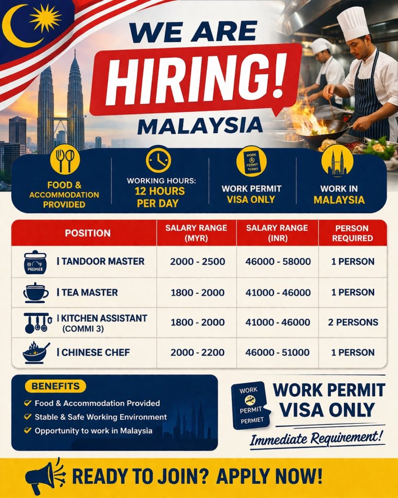 வெளிநாட்டில் ஹோட்டலில் பணிபுரிய ஆட்கள் தேவை..!!