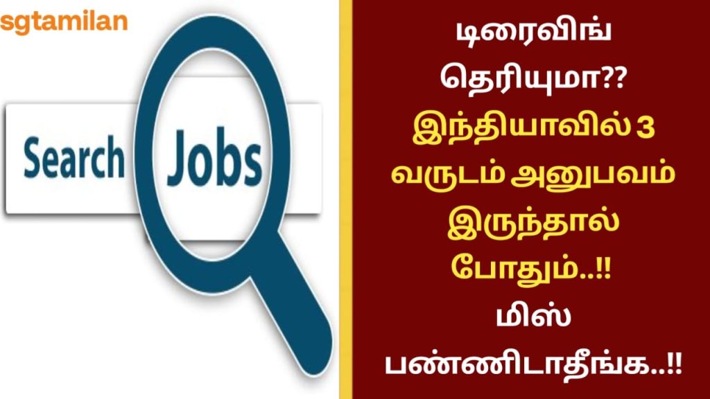 டிரைவிங் தெரியுமா?? இந்தியாவில் மூன்று வருடம் அனுபவம் இருந்தால் போதும்..!! மிஸ் பண்ணிடாதீங்க..!! இந்த வேலை வாய்ப்பு பற்றி முழுவதுமாக படித்துவிட்டு விண்ணப்பிக்கவும்.எங்கள் அலுவலகம் இந்திய நேரப்படி காலை 9.30 மணி முதல் மாலை 06.00 மணி வரை மட்டுமே திறந்திருக்கும்.அந்த நேரங்களில் மட்டுமே பதில் கிடைக்கும். ஞாயிற்றுக்கிழமை விடுமுறை.மேலும் இப்பதிவில் கொடுக்கப்பட்டுள்ள டெலெக்ராம் id க்கு மட்டும் தொடர்பு கொள்ளவும். குறிப்பு : இந்த வேலைக்கான தகுதி இருந்தால் மட்டும் விண்ணப்பிக்கவும்.நாங்கள் தினந்தோறும் நிறைய வேலை