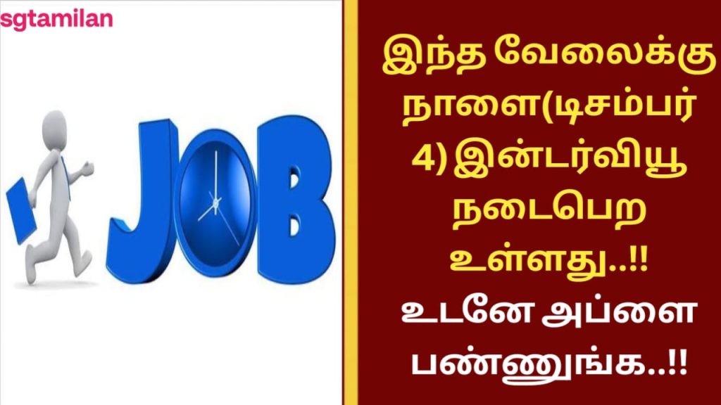 இந்த வேலைக்கு நாளை(டிசம்பர் 4) இன்டர்வியூ நடைபெற உள்ளது..!! உடனே அப்ளை பண்ணுங்க..!!