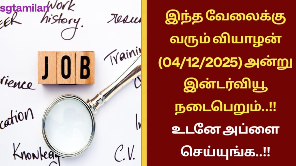 இந்த வேலைக்கு வரும் வியாழன்(04/12/2025) அன்று இன்டர்வியூ நடைபெறும்..!! உடனே அப்ளை செய்யுங்க..!!