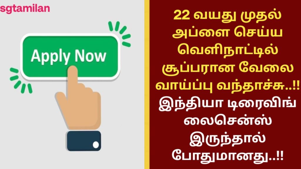 22 வயது முதல் அப்ளை செய்ய வெளிநாட்டில் சூப்பரான வேலை வாய்ப்பு வந்தாச்சு..!! இந்தியா டிரைவிங் லைசென்ஸ் இருந்தால் போதுமானது..!!