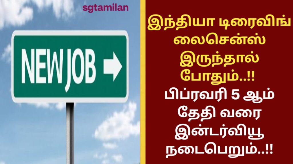 இந்தியா டிரைவிங் லைசென்ஸ் இருந்தால் போதும்..!! பிப்ரவரி 5 ஆம் தேதி வரை இன்டர்வியூ நடைபெறும்..!!