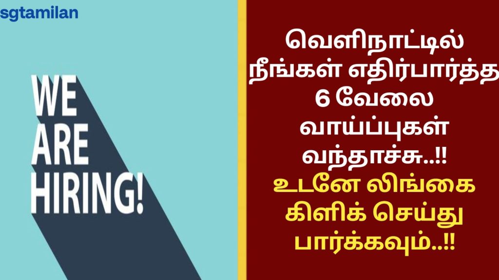 வெளிநாட்டில் பெண்களுக்கு வேலை வாய்ப்பு..!! இந்த வேலை வாய்ப்பு பற்றி முழுவதுமாக படித்துவிட்டு விண்ணப்பிக்கவும். எங்கள் அலுவலகம் இந்திய நேரப்படி காலை 9.30 மணி முதல் மாலை 06.00 மணி வரை மட்டுமே திறந்திருக்கும்.அந்த நேரங்களில் மட்டுமே பதில் கிடைக்கும். ஞாயிற்றுக்கிழமை விடுமுறை.மேலும் இப்பதிவில் கொடுக்கப்பட்டுள்ள டெலெக்ராம் id க்கு மட்டும் தொடர்பு கொள்ளவும். குறிப்பு : இந்த வேலைக்கான தகுதி இருந்தால் மட்டும் விண்ணப்பிக்கவும்.நாங்கள் தினந்தோறும் நிறைய வேலை வாய்ப்புகளைப் பதிவிடுகிறோம். இதனால், நீங்கள் எந்த […]