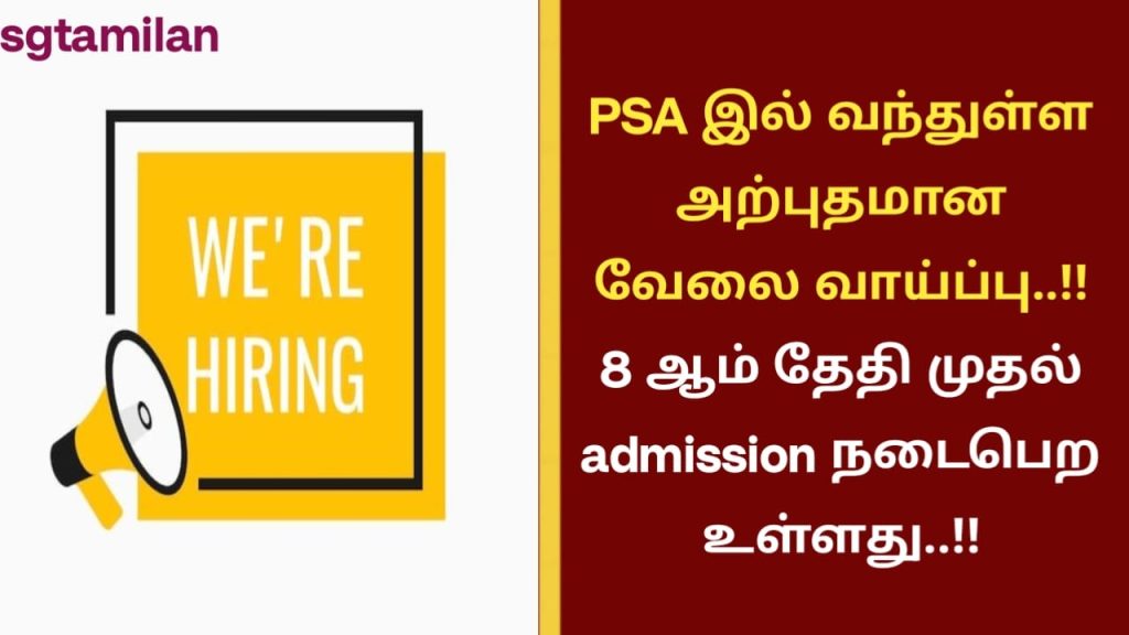 PSA இல் வந்துள்ள அற்புதமான வேலை வாய்ப்பு..!! 8 ஆம் தேதி முதல் admission நடைபெற உள்ளது..!!