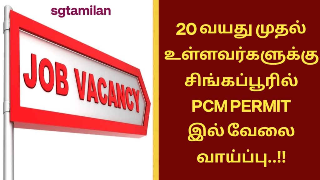 20 வயது முதல் உள்ளவர்களுக்கு சிங்கப்பூரில் PCM PERMIT இல் வேலை வாய்ப்பு..!!