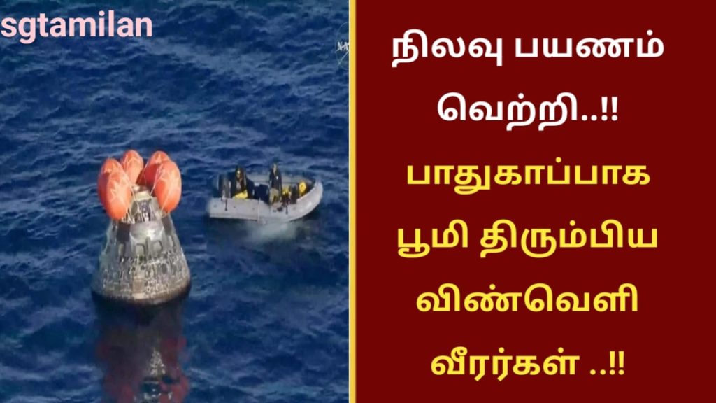 நிலவு பயணம் வெற்றி..!! பாதுகாப்பாக பூமி திரும்பிய விண்வெளி வீரர்கள் ..!! ஹூஸ்டன்: நிலவுக்கான பயணத்தை வெற்றிகரமாக முடித்துவிட்டு 4 விண்வெளி வீரர்கள் பாதுகாப்பாக பூமிக்கு திரும்பி இருக்கின்றனர். அவர்கள் பயணம் செய்த ஆர்டெமிஸ் – 2 என்ற விண்கலம், பூமியின் வளிமண்டலத்தைக் கிழித்துக்கொண்டு பசிபிக் பெருங்கடலில் நாலாபுறமும் தண்ணீர் சிதறத் தரையிறங்கியுள்ளது. CLICK HERE 👉👉வெளிநாட்டில் டயர் ஃபேக்டரியில் வேலைவாய்ப்பு..!! ஆங்கிலம் பேசத் தெரிந்தால் போதும்..!! இந்த வெற்றிகரப் பயணமானது, 50 ஆண்டுகளில் நிலவுக்கு மனிதர்கள்