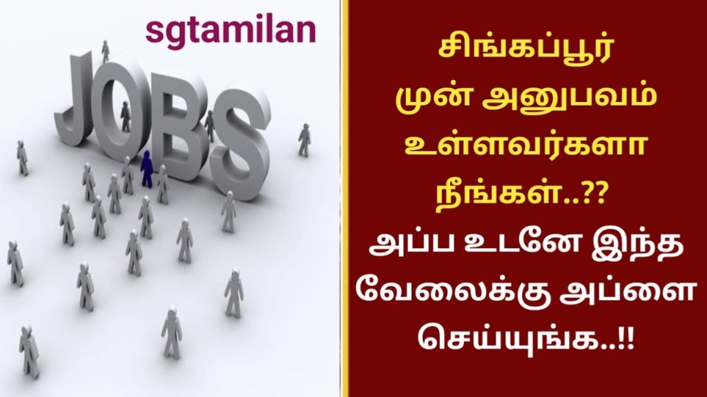 சிங்கப்பூர் முன் அனுபவம் உள்ளவர்களா நீங்கள்..?? அப்ப உடனே இந்த வேலைக்கு அப்ளை செய்யுங்க..!!