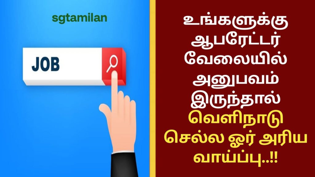 உங்களுக்கு ஆபரேட்டர் வேலையில் அனுபவம் இருந்தால் வெளிநாடு செல்ல ஓர் அரிய வாய்ப்பு..!!