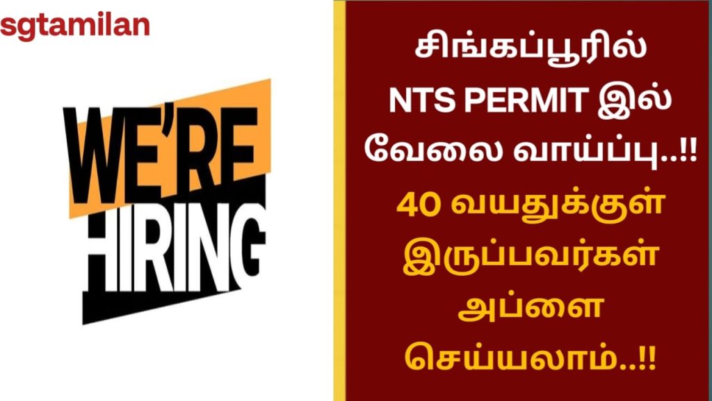 சிங்கப்பூரில் NTS PERMIT இல் வேலை வாய்ப்பு..!! 40 வயதுக்குள் இருப்பவர்கள் அப்ளை செய்யலாம்..!!